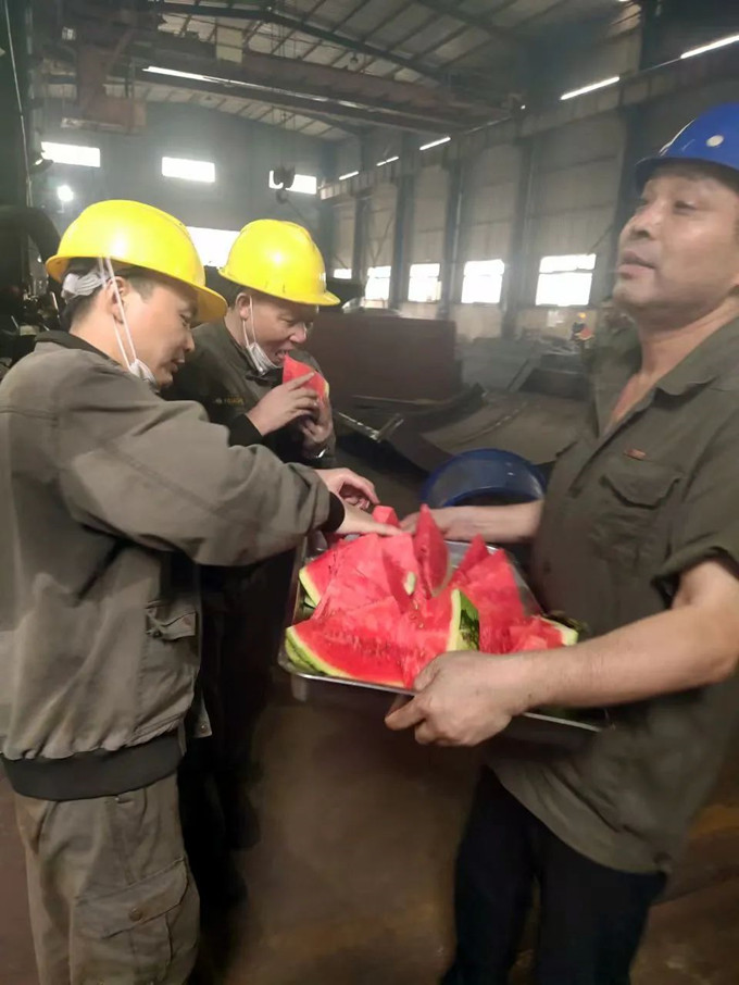 在车间紧张的生产中,行政处工作人员为在高温下坚守岗位的员工送上清凉的“能量补给”,不仅清热解暑,还承载着公司领导对员工的感谢与关爱。