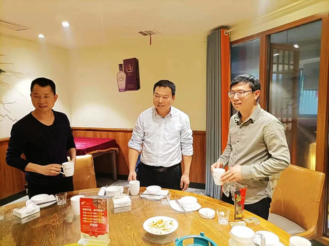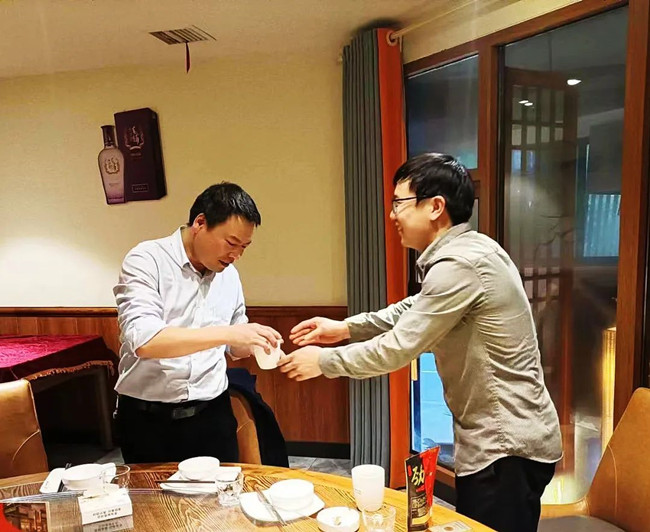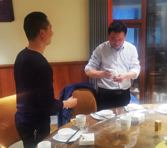 在宴会上,刘洋、丁永继两位徒弟向师傅刘美林总经理行拜师礼——首先向师傅深深鞠躬:表示在今后的工作中一定诚心、细心、虚心地向师傅学习请教。尽己所能处理和解决工作中的常规问题,遇事多征求师傅意见;同时会多看些企业管理方面的书籍,也希望在座的各位干部多多指教。接着,两位向师傅敬茶。